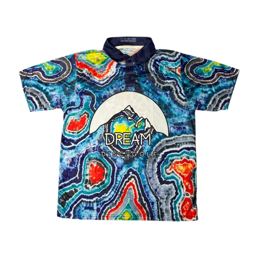Dream Disc Golf Mountain Logo on a 100% Polyester Polo Tee for a Great fit and Feel that wont fade with use. Pro Tip - Polo runs a half size larger